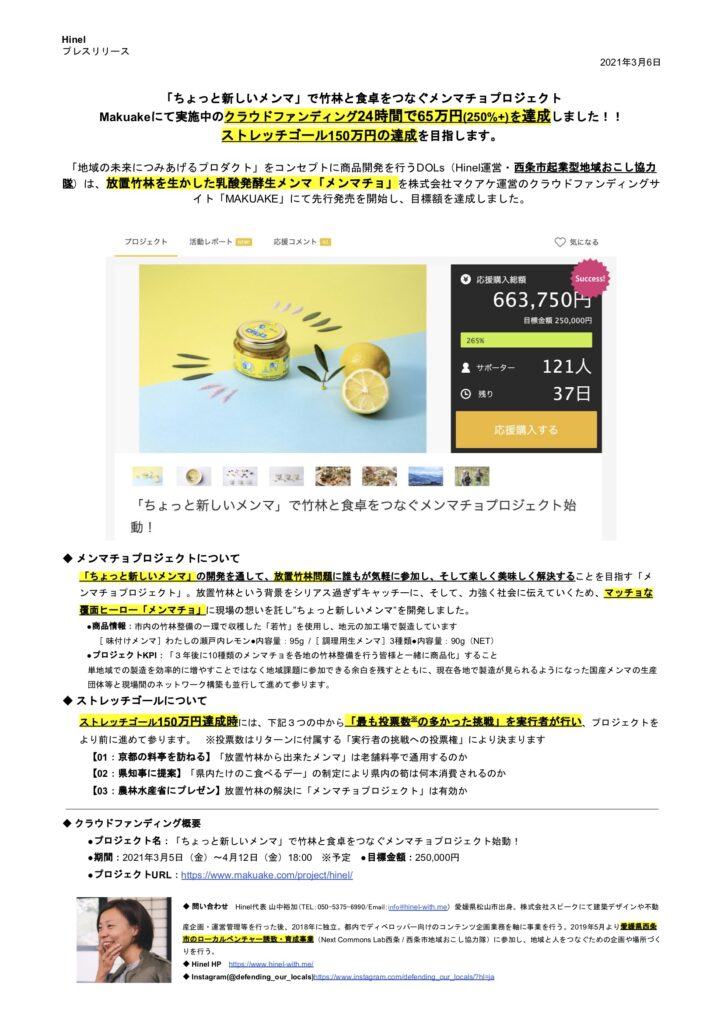 2021/03/22愛媛経済レポート_CFで先行発売、業務用を提供「西条の放置竹林でメンマの新商品」